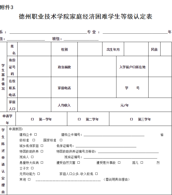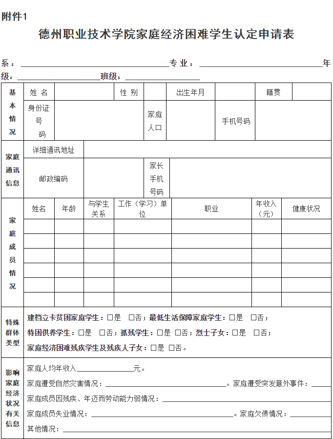 附件:1.德州家庭经济困难学生认定申请表