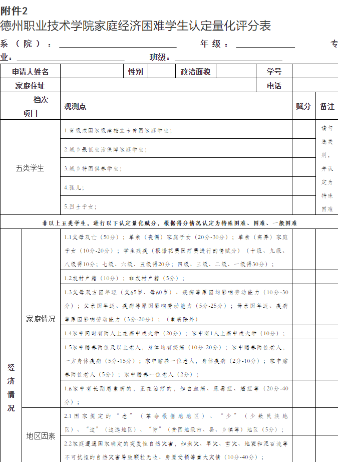 2.家庭经济困难学生认定量化评分表