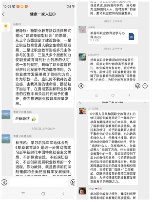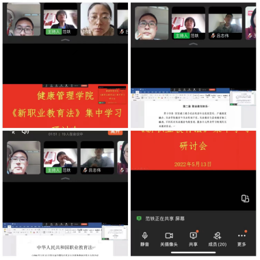 beat365会员官方网站要求全体老师们深入自学,并写了200字以上学习体会,发到教师群,相互交流学习。5月13日下午4点半,利用钉钉群线上会议,深入学习研讨了职业教育法。beat365会员官方网站书记范轶带领大家一起学习了职业教育法,并进行了解读。重点解读了“国家采取措施,加快培养托育、护理、康养、家政等方面技术技能人才。”借着国家政策东风,我们的家政、智慧养老等专业尽快成长起来。昨天,老师们看了长沙民政职业技术学院直播,主题是技能,让生活更美好。重点解读了健康养老服务技能。