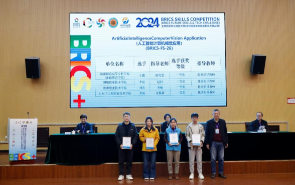 11月10日,2024金砖国家职业技能大赛人工智能计算机视觉应用赛项国际总决赛落下帷幕。beat365官网学生刘艺以优异成绩获得一等奖第三名的好成绩,荣获铜牌。指导老师刘敏获“优秀指导教师”荣誉称号。