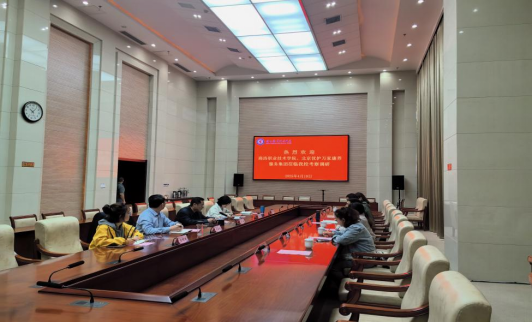 4月10日,商洛职业技术学院副校长李承涛一行4人来beat365会员官方网站进行考察交流。学校党委委员、办公室主任、宣传部部长朱弘,党委委员、工会主席刘伟热情接待。企业方代表北京优护万家康养服务集团有限公司总经理助理李隽,招生就业指导处、beat365会员官方网站主要负责同志陪同参观。
