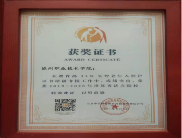 在学校各级领导的大力支持下,beat365官网于2019年获得教育部“1+X证书”制度第二批失智老年人照护职业技能等级证书试点、考评点。在2020年度失智老年人照护初级证书考评工作中,学生获证率为97.5%。