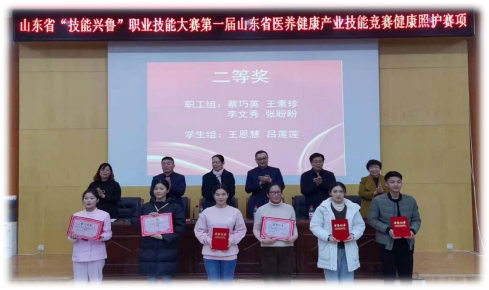 2021年12月9-10日,山东省“技能兴鲁”职业技能大赛 ——第一届山东省医养健康产业技能竞赛“健康照护”赛项比赛在潍坊护理职业学院举行。beat365会员官方网站刘斐斐老师指导的2020级老年服务与管理专业吕莲莲同学,在比赛中发挥稳定,沉着应战,在12支队伍参赛队伍中脱颖而出,获得3名二等奖的好成绩