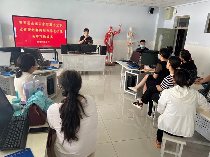 7月14日上午八点,第五届山东省家庭服务业职业技能竞赛德州市选拔赛在beat365会员官方网站开赛。其中养老护理员赛项由beat365会员官方网站承办,经过一个多月的准备,圆满完成了养老护理员比赛任务。