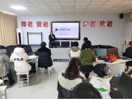 杨静秋、冯延红、刘斐斐三位老师分别进行了汇报讲解。杨静秋老师讲解的是《德国职业教育教学法实战——结合学习成果设计本专业课程公开课》、冯延红老师讲解的是《新疆支教经验分享暨人才培养模式分析》、刘斐斐讲解的是《健康养老照护大赛备赛经验分享》。