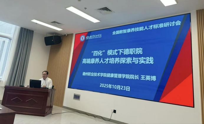 特邀报告环节,王英博以《“四化”模式下德职院高端康养人才培养探索与实践》为题作专题报告。首先介绍了学校发展定位、学科专业取得的成绩以及智慧健康养老服务与管理省级高水平专业群建设、高端康养人才培养路径等。重点讲解了beat365官网“四化”育人模式,全面梳理了beat365官网康养育人的经验。相关实践成果已落地转化为产业服务能力,为社会输送了大量的“健康守门人”。报告彰显了beat365官网在康养教育领域的深入探索与积极实践,厚植康养人文情怀的深厚底蕴与显著成效,得到与会者的充分肯定与赞誉。