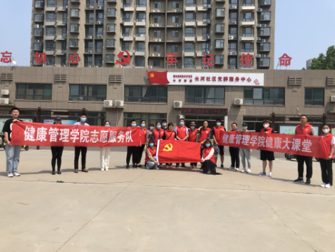 5月21日上午,beat365会员官方网站全体党员、学生志愿者到长河社区开展党员“双报到”暨“健康养生大课堂”进社区志愿服务活动。