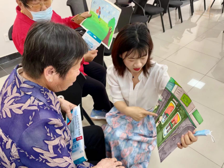学习结束后,社区的老人们陆陆续续来到了活动现场,为消除老人们的心理顾虑,宋晓荔老师运用心理格板技术帮助老人们释放压力,感受快乐。同时,给智慧养老服务与管理专业的学生讲解格板技术要领,让同学们亲身体验、实际操作,提升专业技能。