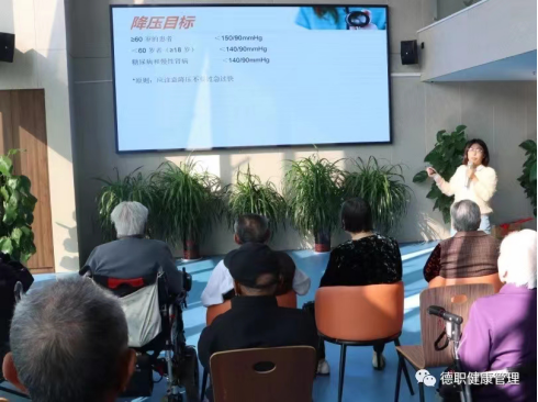 随后,健康科普服务队王建红老师讲授《脑卒中的预防》,王老师分别从脑卒中的概念、如何识别脑卒中、脑卒中的治疗、脑卒中的预防四个方面进行了详细讲解。重点讲了脑卒中的预防,首先控制血压、控制糖尿病、控制高血脂。再次改变生活方式,控制体重、限制饮酒、增强有氧运动,减少钠盐摄入量,要养成健康的生活方式,定期进行脑卒中危险因素筛查,做到早发现、早预防、早诊断、早治疗。结束前,王老师为老人们准备了一场生动有趣的手指操,旨在通过按摩手指、促进血液循环,达到强身健体的目的。老人们跟着王老师的示范,手指灵活地在空中舞动,脸上洋溢着快乐的笑容。