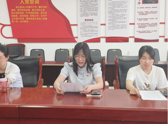 刘敏老师从一名新入职的教师角度,谈了学习心得,并表示时刻牢记党员的身份责任,以党纪学习教育为契机学习党规党纪,自觉做遵纪守法的践行者,以实际行动展现良好精神风貌
