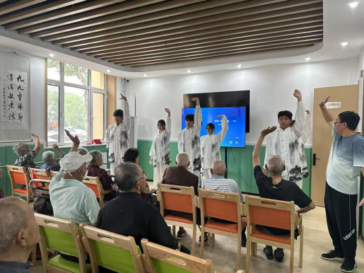 下午,教师党员、金晖健康社会实践队学生志愿者走进财鑫康养综合服务中心开展了党建共建系列活动。陶丙岭教授带来了《高血压的健康指导》科普讲座,为老人们普及健康科普知识学生志愿者们化身“活力导师”,带领老人们学习手势舞,带领老人们练习八段锦,现场一片欢声笑语,气氛围温馨和谐。老人们看着志愿者们忙碌的身影,纷纷表示感激和赞赏。此次活动,不仅丰富了老人们的精神文化生活,也让学生们在实践中践行了志愿服务精神,传递了青春正能量。
