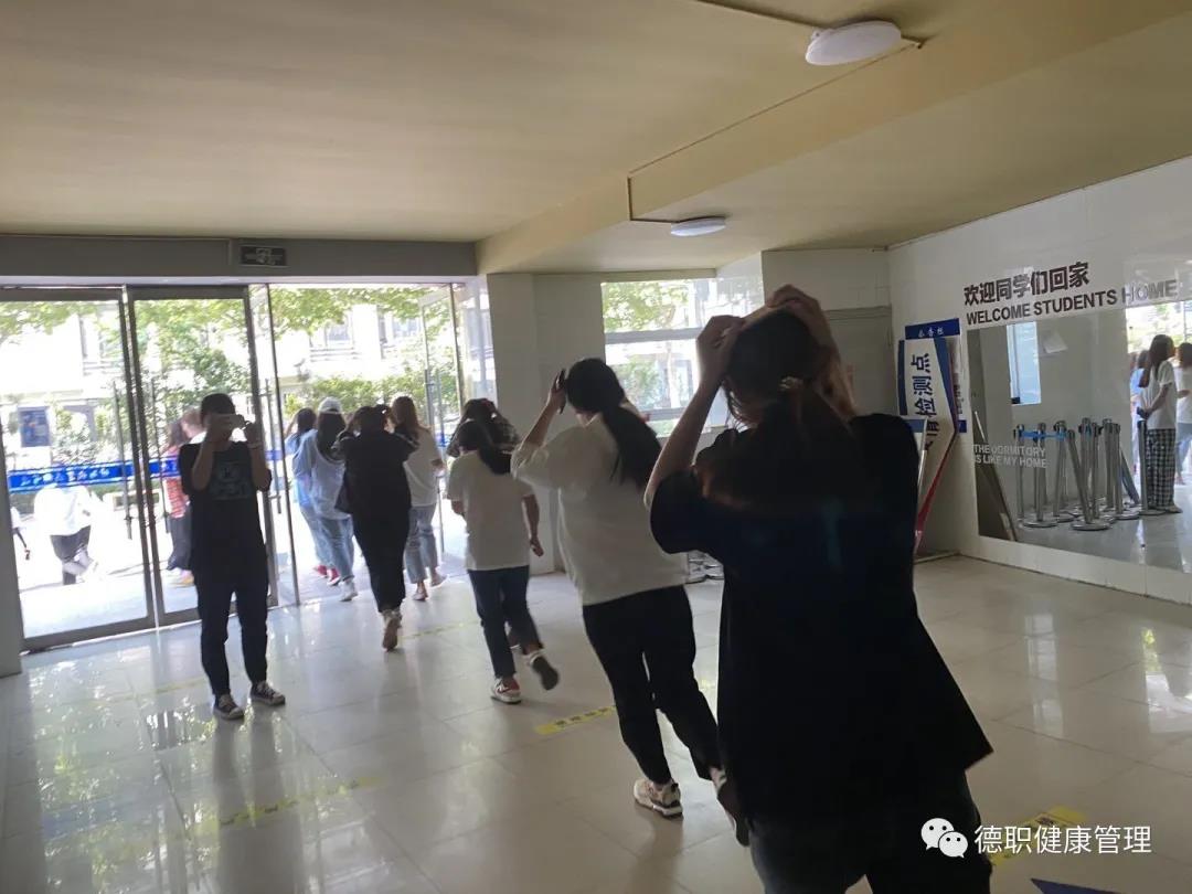 首先布置安全演练前的注意事项,接着由杨洁同学讲诉具体疏散演练过程。当急促的短哨声响起,喊:”地震来了,不要慌!”并组织学生在教室内选择安全地点就近躲藏,学生用书包或书保护头部,并抓住牢固的物体,蹲下或坐下,尽量蜷曲身体,降低重心,保护好头颈、眼睛,并保持镇定。一声长哨后,进入紧急疏散环节,整个演习过程紧张有序,有条不紊,均能做到安全撤离、有序集合 。