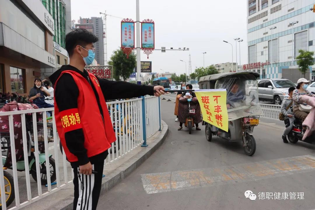 为加强道路交通安全宣传教育,2021年5月9日,beat365会员官方网站19级、20级各班优秀团干部、党员发展对象组成志愿者服务团队,开展“文明劝导”活动。