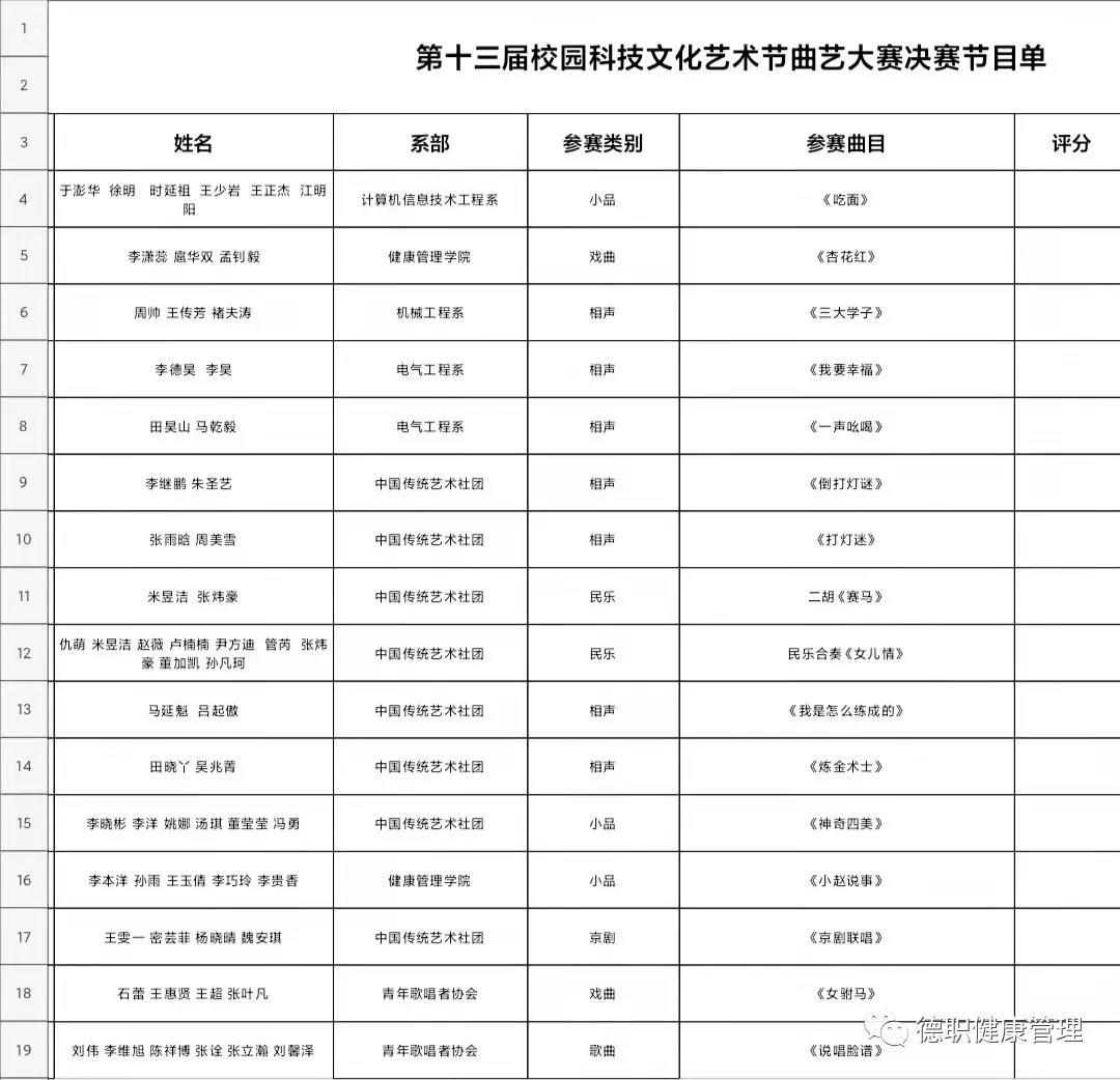 经过激烈的比拼共有16个节目入围决赛。现将名单公示如下: