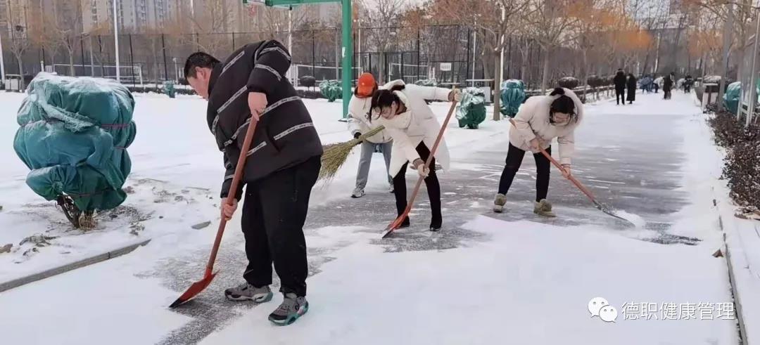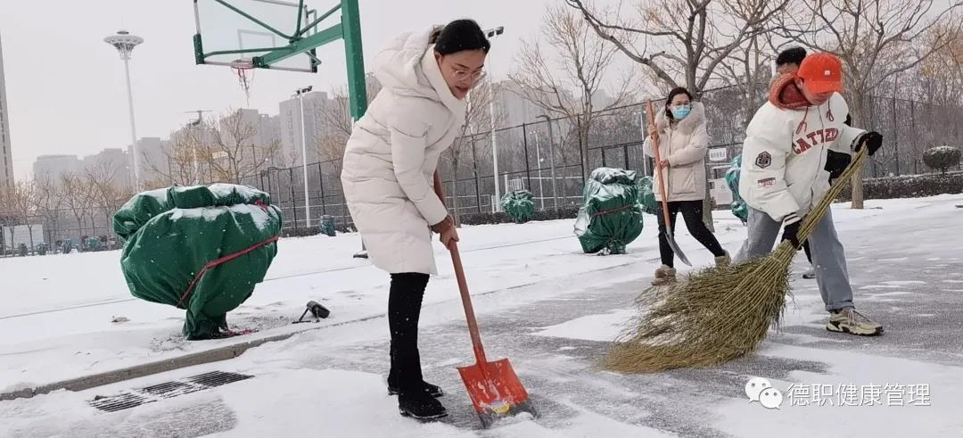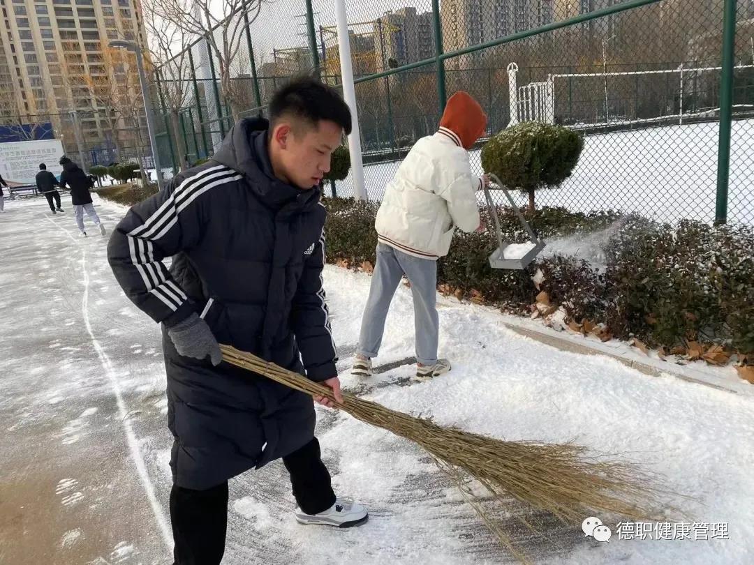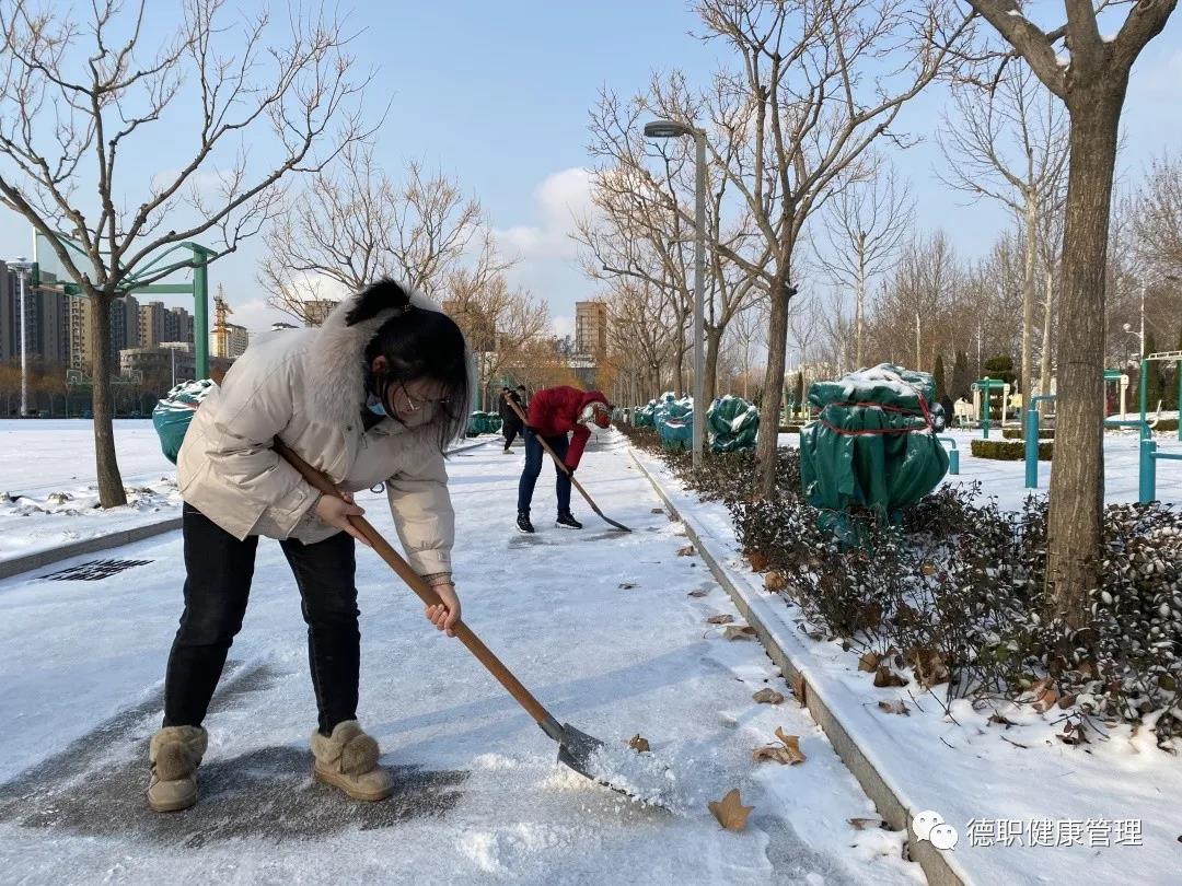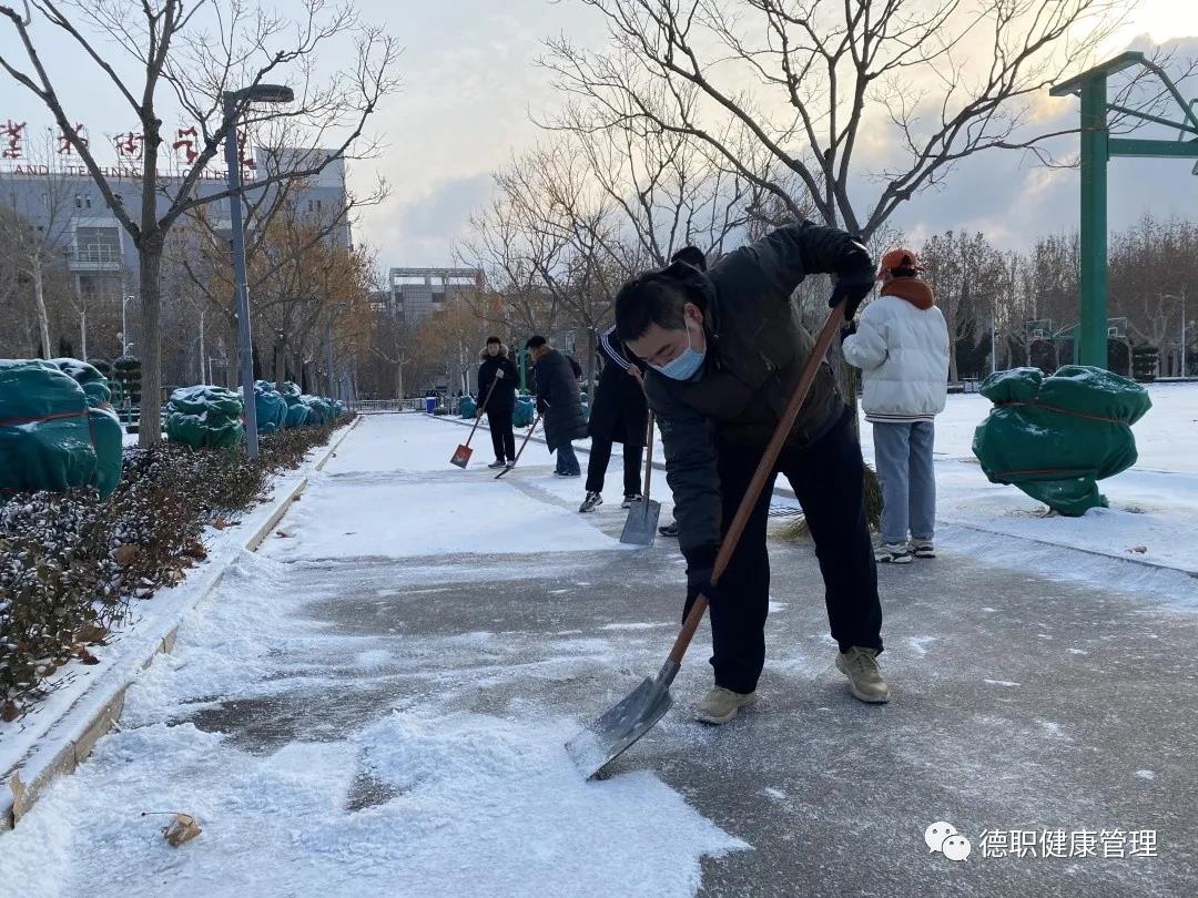 12月24日天降瑞雪,覆盖校园。beat365会员官方网站党员干部教师、学生志愿者大清早准时到工作岗位。我们的清扫区域是综合运动体育场周边道路,是学生们上课必经之路,开辟出洁净通道,保障学生们出行安全。