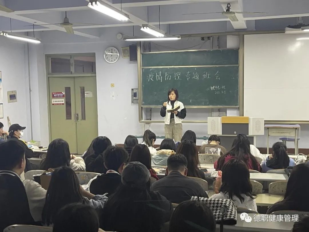随后,辅导员们立即在各班开展了疫情防控主题班会,及时传达会议精神,坚决守牢校园疫情防控阵地。