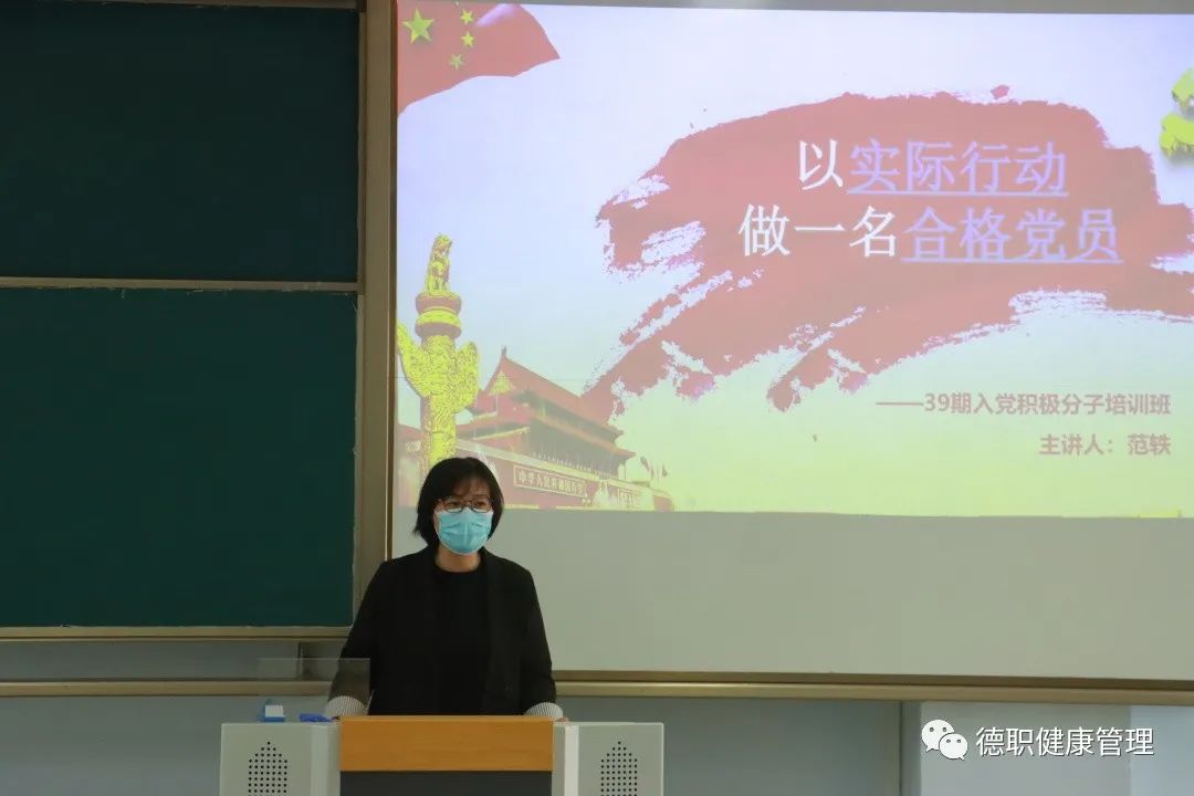 4月22日下午4:30,在博学楼C505教室,beat365会员官方网站党支部书记范轶同志为本院第三十九期入党积极分子培训班学员讲授党课,授课主题是“以实际行动争取做一名合格的共产党员”。