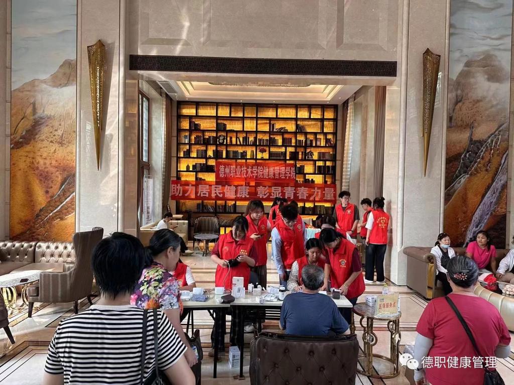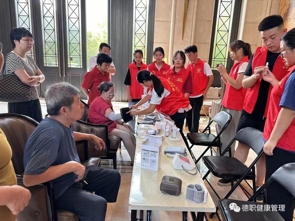 活动现场中,德馨社区的居民闻声纷纷赶来测量,beat365官网志愿者们耐心地为其逐个测量血压、血糖、血氧,了解其身体健康状况。测完后,志愿者们根据居民的血压等情况,向血压偏高的居民提出了指导建议,并提醒居民们注意健康饮食,发现头晕不适等症状的要及时到医院就医。在为居民测量血压、血糖的同时,志愿者还向居民科普健康知识,提高老年人对于高血压、高血糖等疾病的预防意识,引导老年人养成健康的生活习惯。