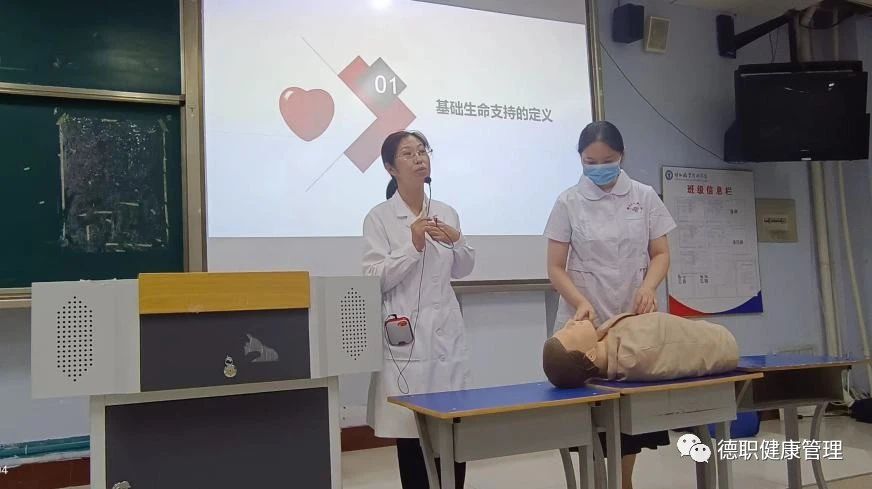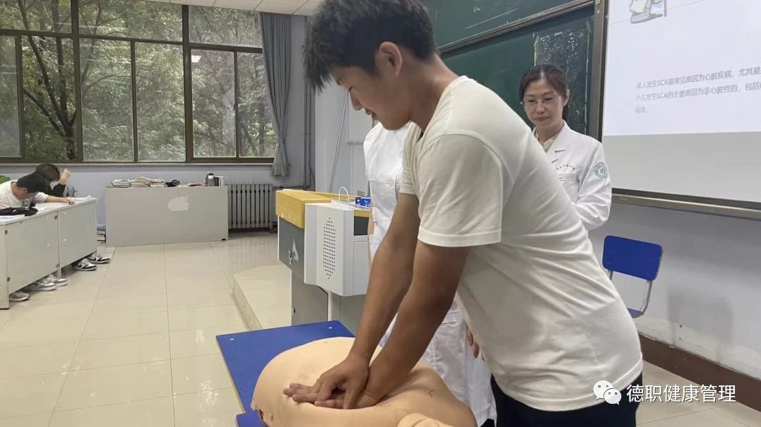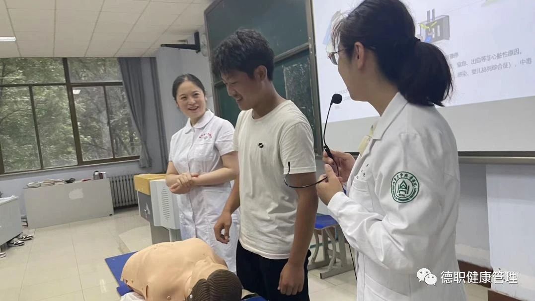 其次发热门诊护士长程娜结合2023年度世界急救日主题,对在校约200名师生讲解常见的急救措施及方法,同时通过现场演示并和同学们互动,希望同学们能在练习中掌握专业的急救方法,提高互救自救的能力。