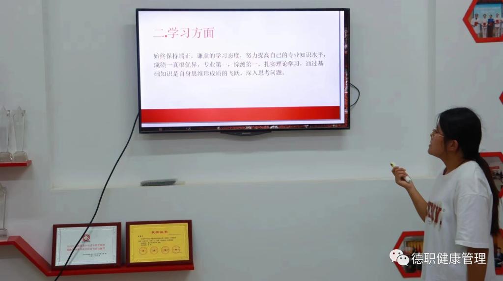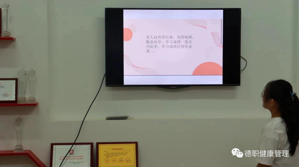 参加此次答辩的同学通过PPT依次从学业情况、社会实践、志愿服务、科研大创等方面展示自我,以优秀的成绩完成每一科的考核的同时,还积极参加了各项活动和各种比赛,并且斩获了多项奖状取得了不俗的成绩,过程中他们条理清晰、表达流畅,尽显一名优秀大学生的综合素质与水平,赢得现场评委老师和同学阵阵掌声,也彰显了健康学子勤奋好学、刻苦钻研的卓越风采。