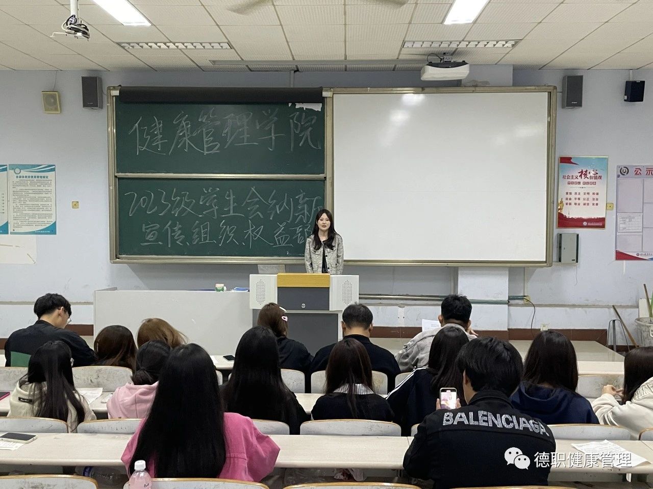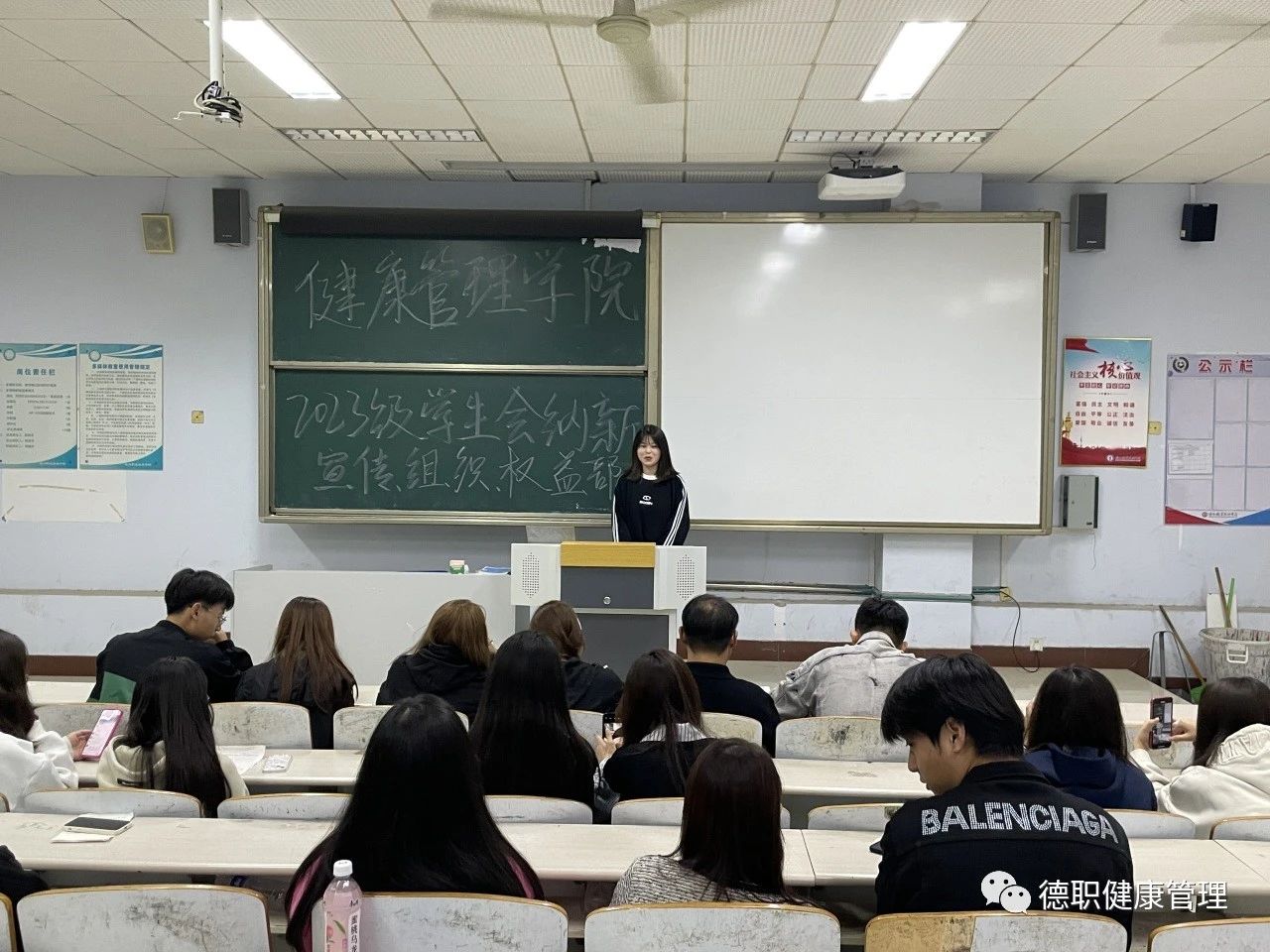 面试过程中,同学们都积极踊跃地站在台前,对自己想加入的部门以及自身特长、未来工作的目标和规划等各方面进行陈述。他们自信大方,侃侃而谈,表达了努力做好竞选岗位工作的信心和决心。同时,面对学长学姐提出的各种问题,也毫不怯场,从容淡定,大方得体地说出自己的想法,言谈举止中无不流露出对学生会工作的真挚渴望和积极进取的蓬勃朝气。