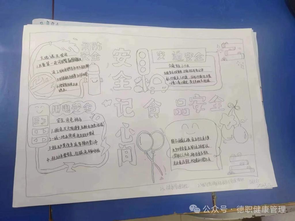 活动中同学们以绘画、文字的形式将安全知识通过一份份精美的手抄报传递给大家。每一份佳作都设计构思精巧、内容丰富多彩,多角度地宣传了食品安全、消防安全、交通安全等知识。可读性、宣传性强,充分体现了知识性、趣味性与实用性的统一,富有非常重要的教育警示意义。