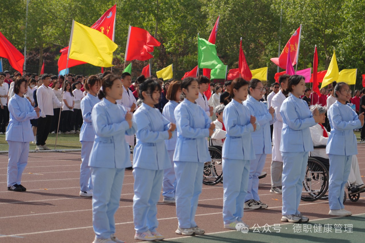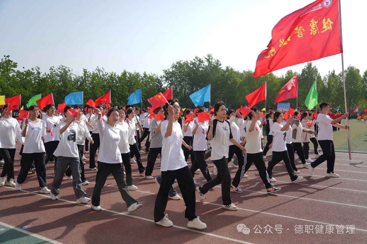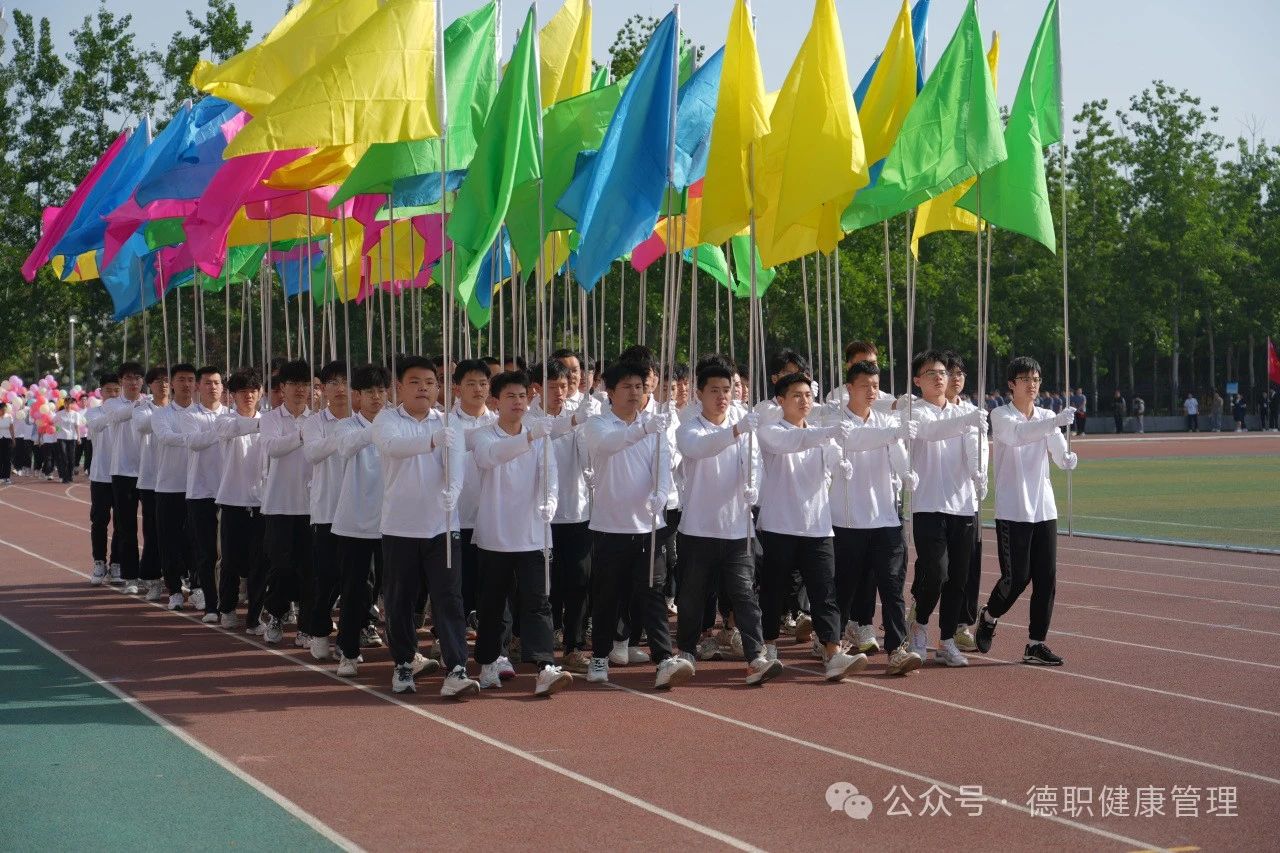 beat365官网运动员方队手持红旗,鲜红的旗帜在空中飘扬,象征着健康学子的青春活力。