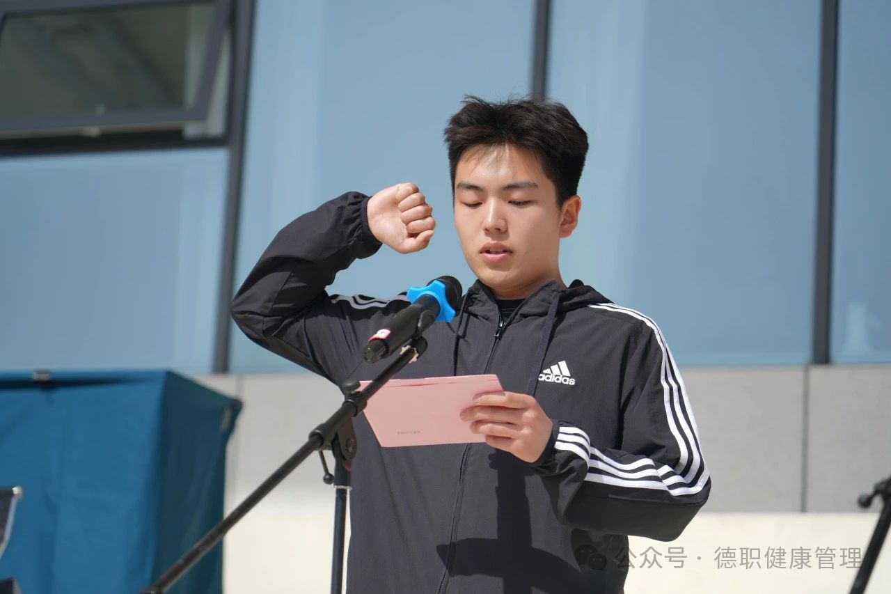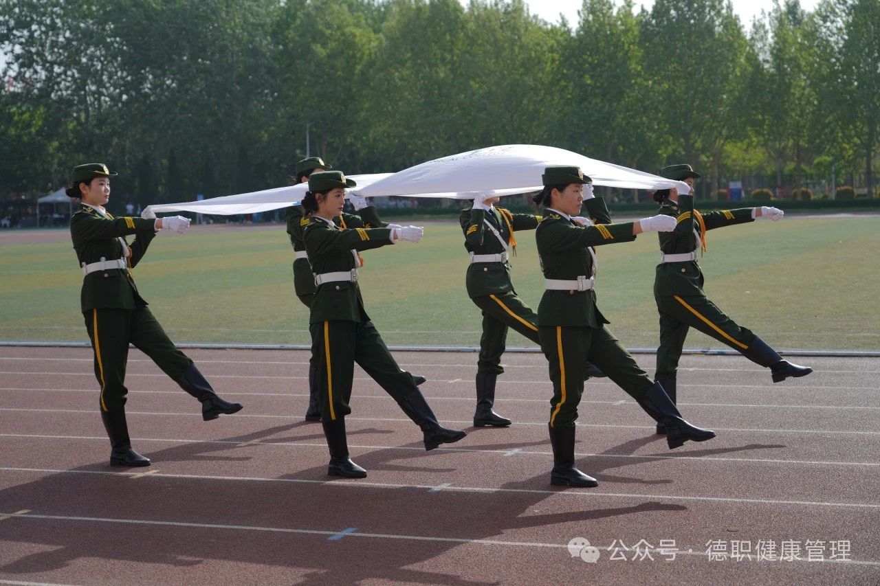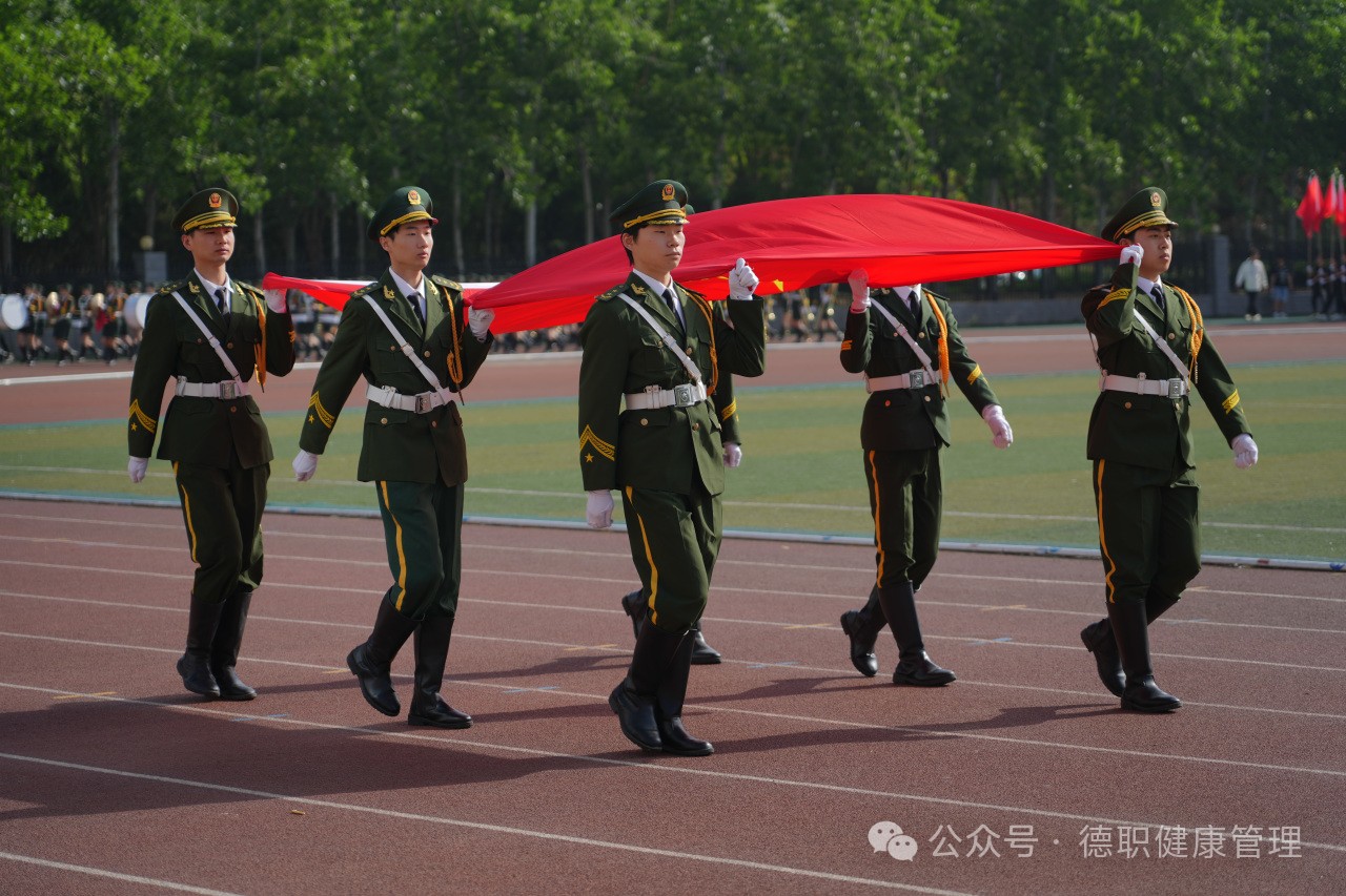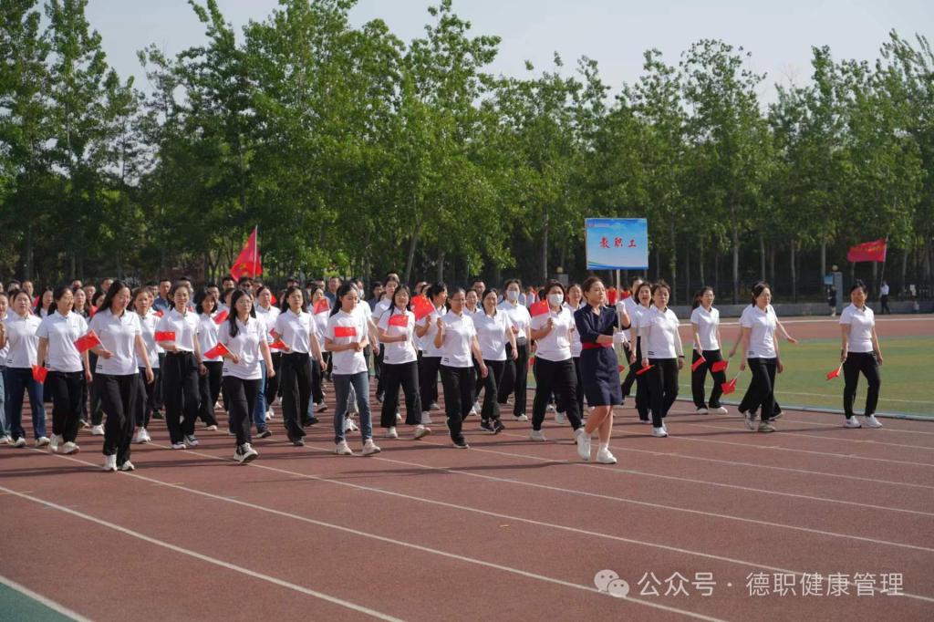 beat365官网运动员方队手持红旗,鲜红的旗帜在空中飘扬,象征着健康学子的青春活力。