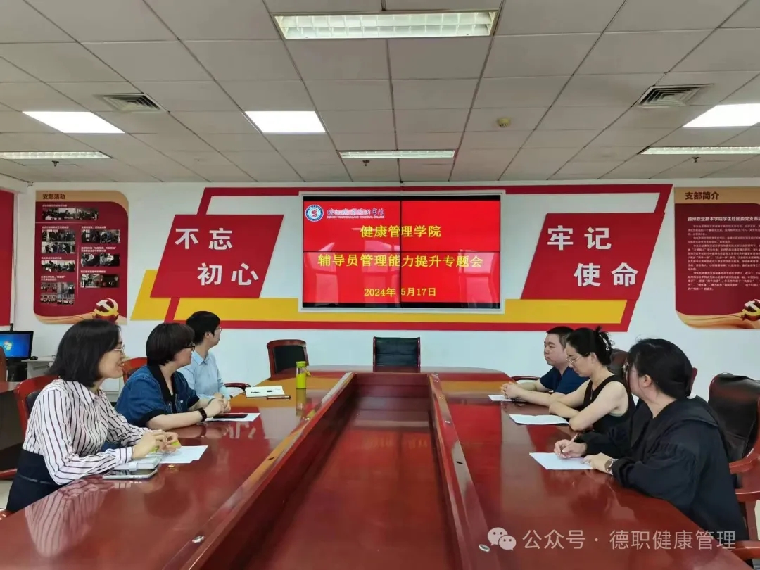为落实立德树人根本任务,进一步加强beat365官网辅导员队伍建设,提升辅导员的专业素质和工作能力,促进辅导员队伍高质量发展。5月17日,beat365会员官方网站“护航成长”辅导员工作室在润德5楼会议室召开辅导员管理能力提升专题会,工作室负责人齐宁主持会议,部分辅导员参加会议。