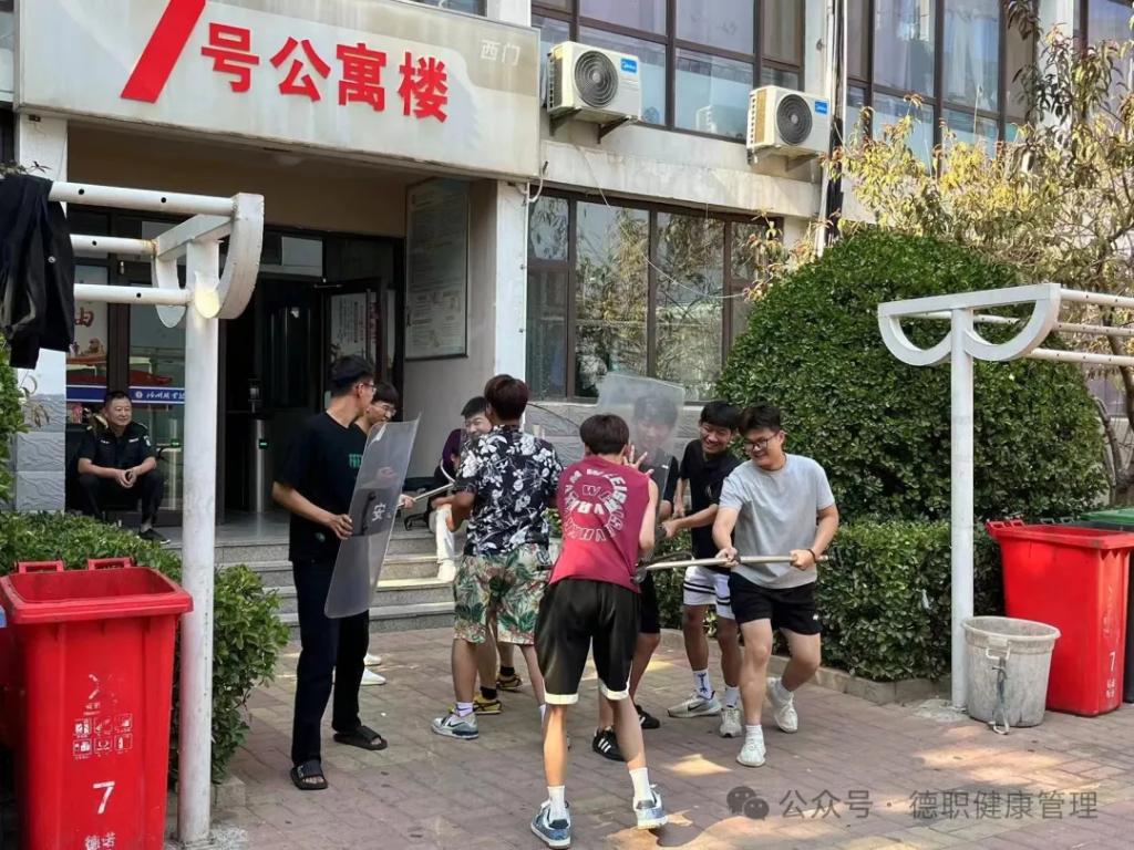 本次活动邀请了保卫处徐庆超老师现场指导和培训,beat365官网师生共同学习了防暴盾、钢叉、长棍等防护器械的正确使用方法和注意事项。