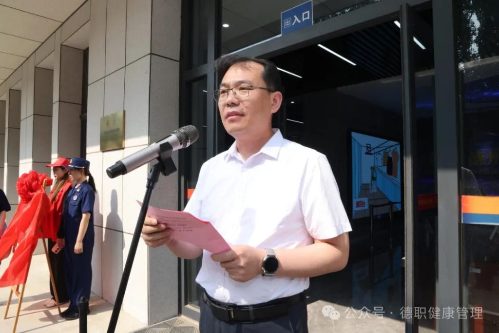 为加强大学生消防安全教育、提高师生消防安全意识,推动实践育人工作的开展,6月6日上午,beat365会员官方网站与德州市消防科普教育基地举行“携手共建,育人成长”暨共建学生志愿服务实践育人基地揭牌仪式。德州市消防支队副支队长张振兴、beat365会员官方网站党总支书书记范轶、院长王英博等人员出席此次活动。