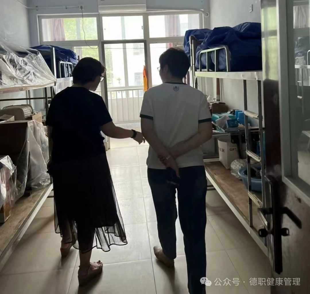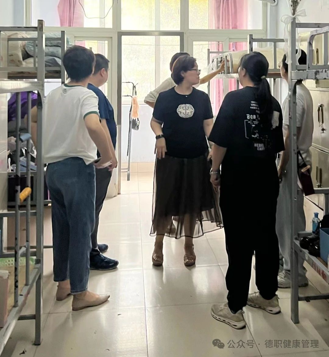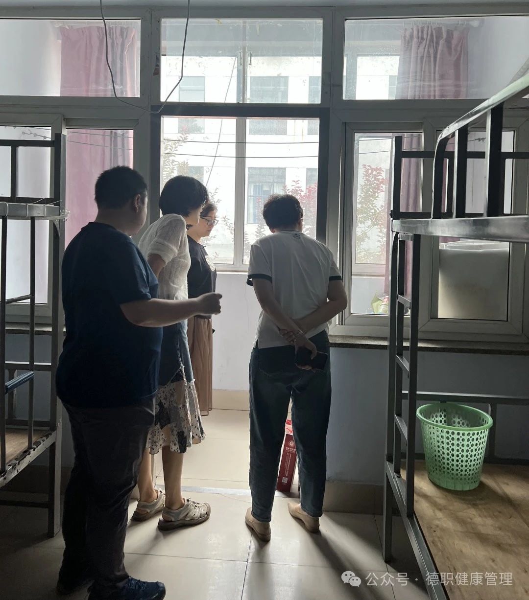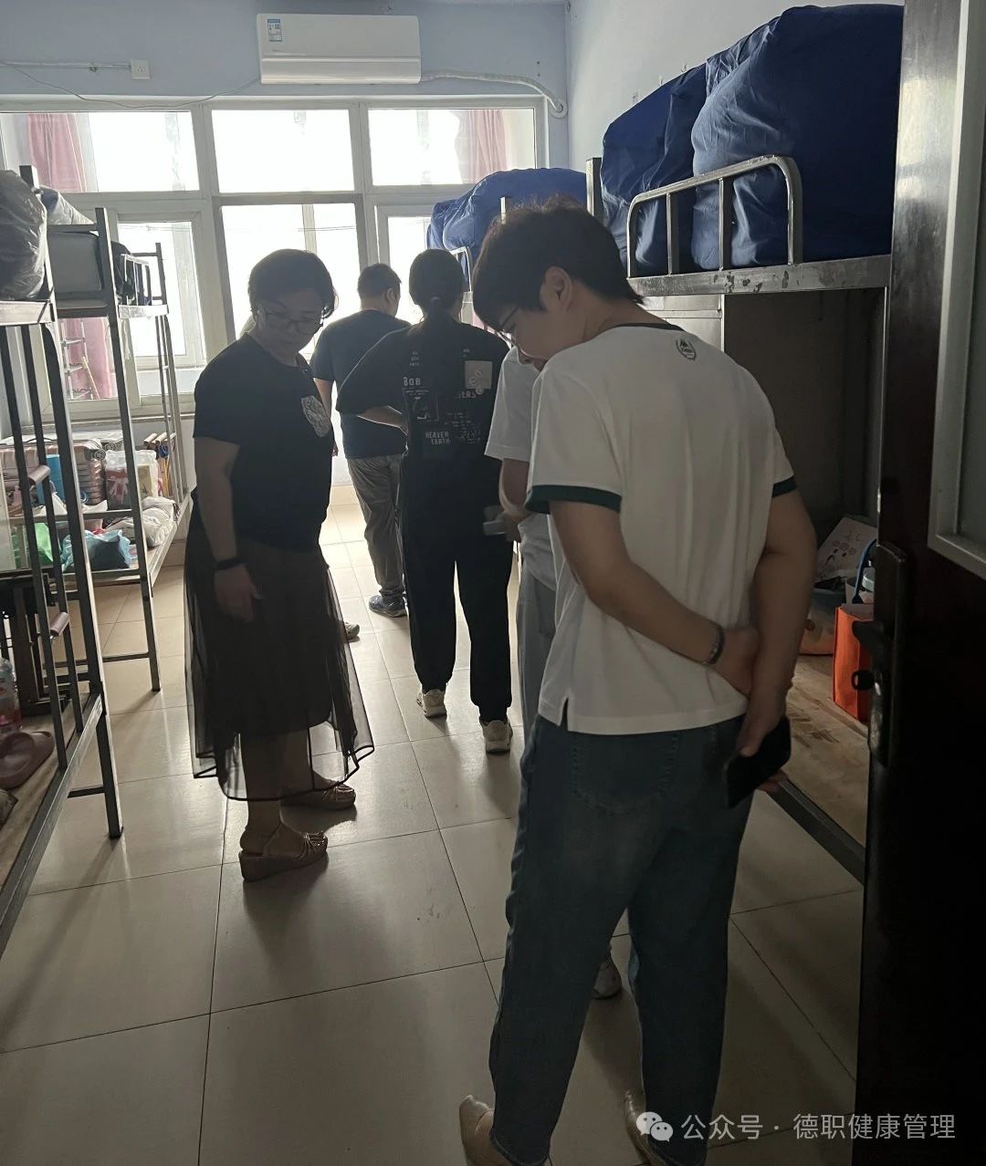 为进一步加强学生宿舍管理,做好暑假学生离校宿舍安全保障工作,2024年7月5号上午beat365会员官方网站党总支书记范轶、学生科科长路遥、副科长齐宁和全体辅导员、班主任老师深入学生宿舍进行学生放假前宿舍安全卫生检查工作。
