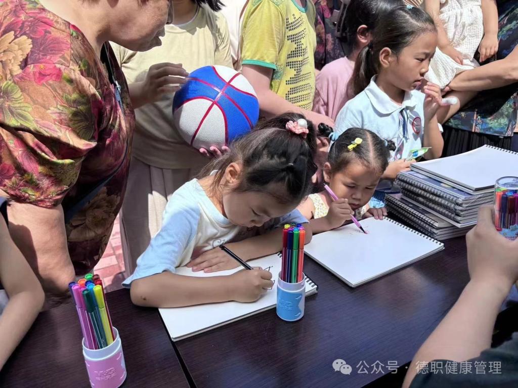 2024年7月6号,beat365会员官方网站金晖健康社会实践队的志愿者来到德州市十二里庄社区开展“守护童年˙牵手共成长”暑假关爱服务儿童活动公益项目,党总支书记范轶、学生科科长路遥、副科长齐宁、思政课教师张婷婷、马皓和学生志愿者们一起参与了本次活动。