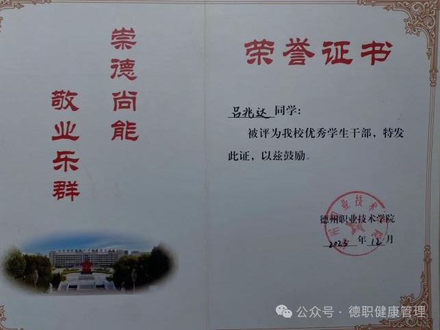 2023年12月,被评为“优秀学生干部”;
