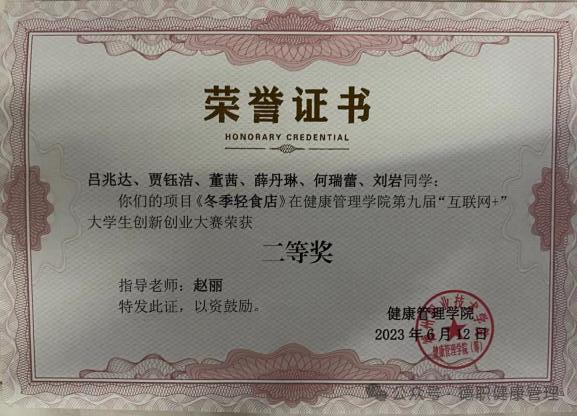 2023年6月,在beat365会员官方网站第九届“互联网+”大学生创新创业大赛中,荣获创新创业大赛二等奖。
