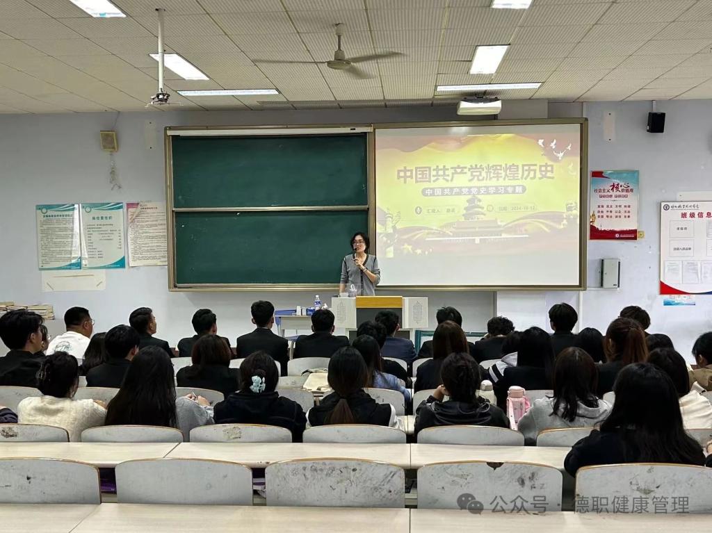 会上,主讲人详细讲述了党的光辉历史,并要求大家要多多学习关注党的历史,从中感悟中国共产党的伟大精神。最后,路遥老师带领同学们重温了入党誓词。