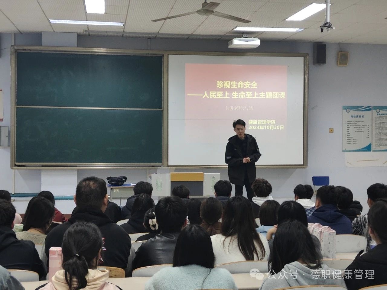 团课上,马皓老师以宣传片播放和PPT讲解的形式,向同学们讲述了消防安全的重要性。通过电动车入户引起火灾的典型案例,帮助大家更加深入地理解了日常消防安全的重要性,增强了大家的安全防范意识,同时升华了珍视生命的人生主题,使同学们对大学生安全问题有了更清晰的了解。