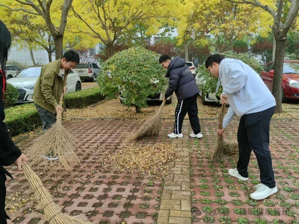 在活动过程中,同学们热情高涨,手持扫帚、簸箕等清扫工具,分散到校园各个角落开展清扫工作。大家认真地清扫着每一片落叶,不放过任何一个死角,现场呈现出一片繁忙而有序的景象。