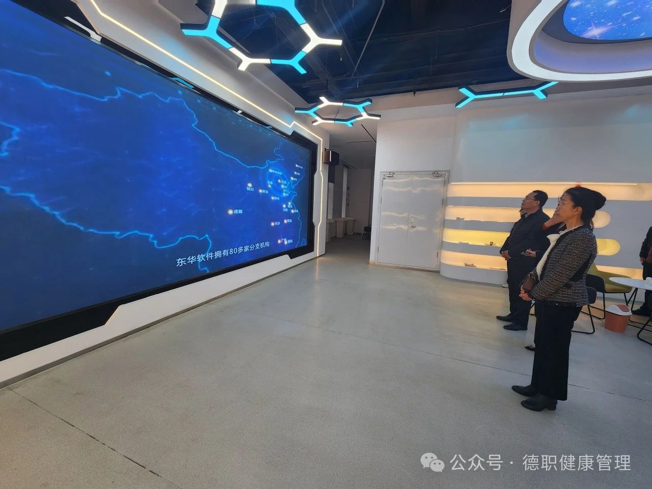 东华软件负责人热情接待并介绍公司简介及观看公司发展宣传片,重点介绍了公司的软件产品、技术实力、企业文化和发展成果。