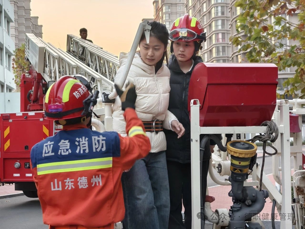 随着学校保卫处处长王强宣布演练开始,beat365官网参演学生迅速响应,按照预定的逃生路线有序撤离。在疏散过程中,学生们遵循“捂鼻弯腰,快速疏散”的安全要领,迅速到达安全区域,确保了演练的顺利进行。同时,消防队员及时展开救援,云梯车成功营救了被困在高楼层的学生,展现了高效的救援能力和专业技能。