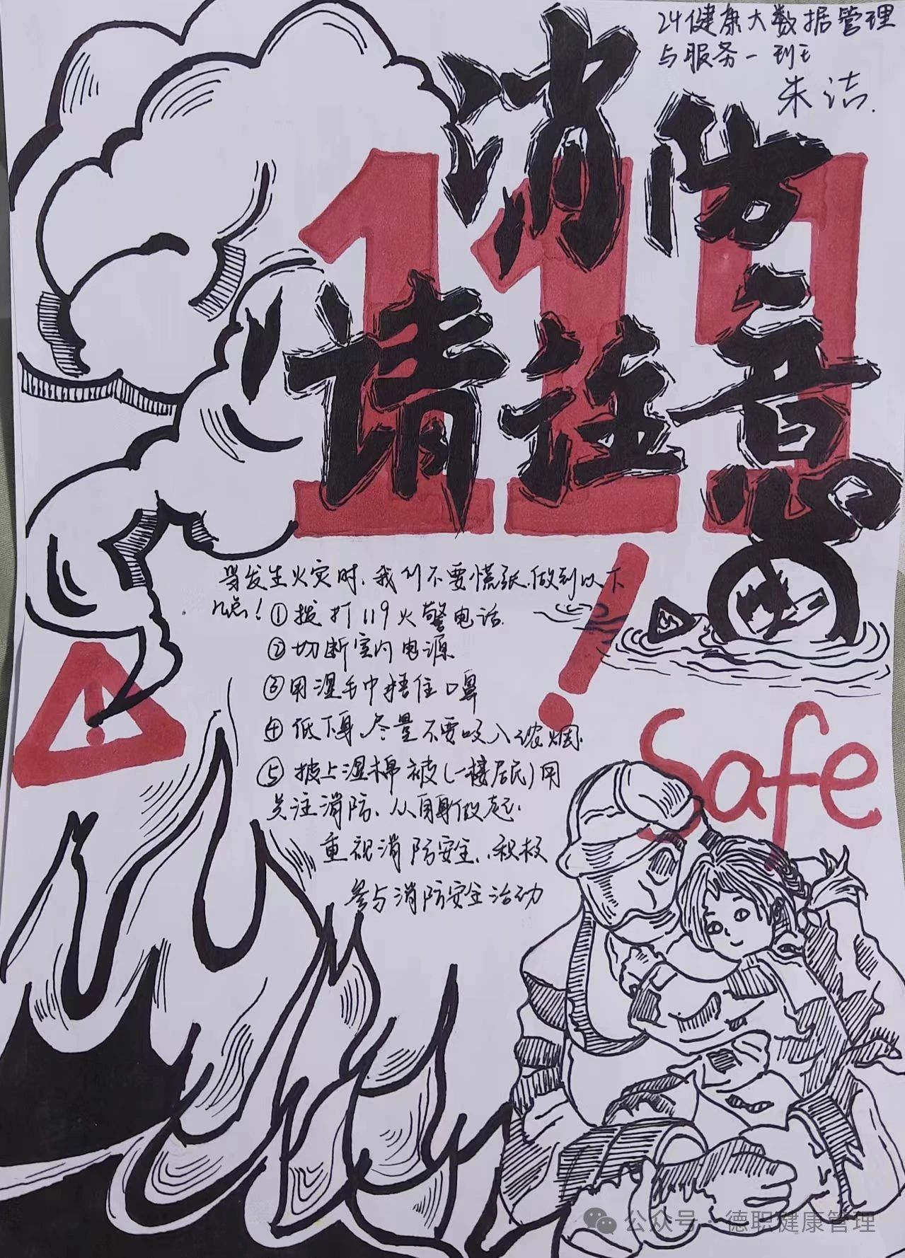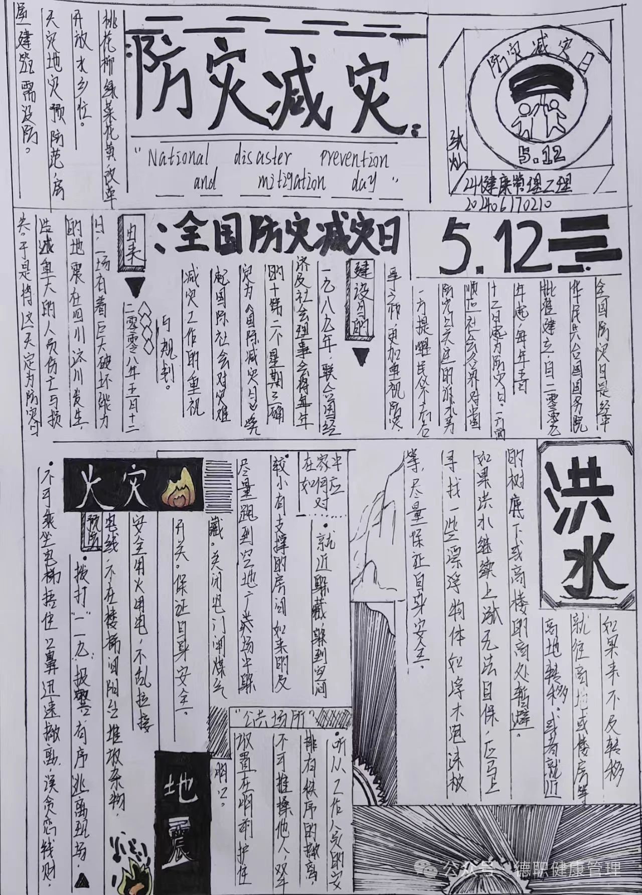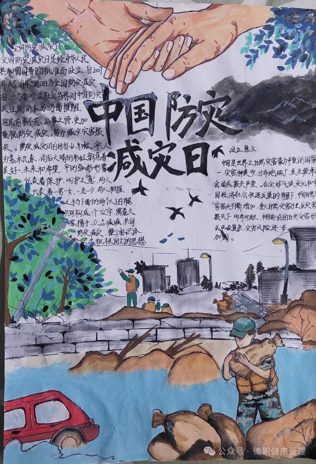 张如欣同学分享了与地震相关的小常识和应急避险方法,对“防灾减灾”中的疏散逃生和自救注意事项进行了重点讲解,旨在增强同学们的安全防范意识和应急处置能力。此外,24级各班同学围绕“防灾减灾”主题创作了手抄报,通过这种形式进一步加深了对防灾减灾重要性的认识。