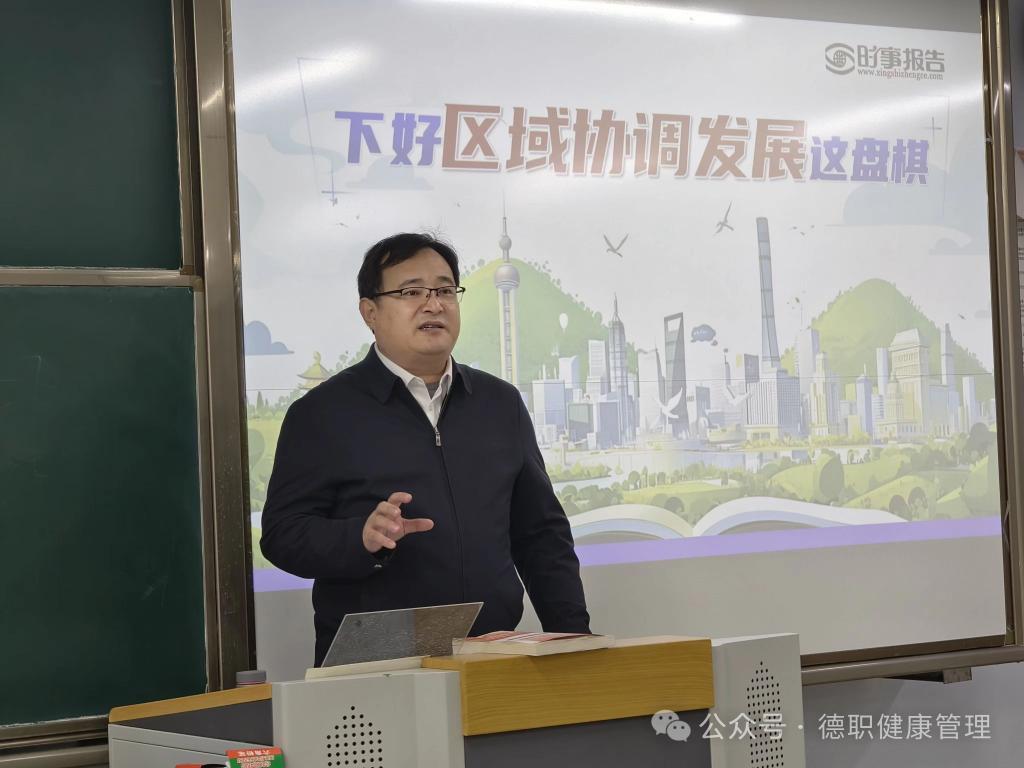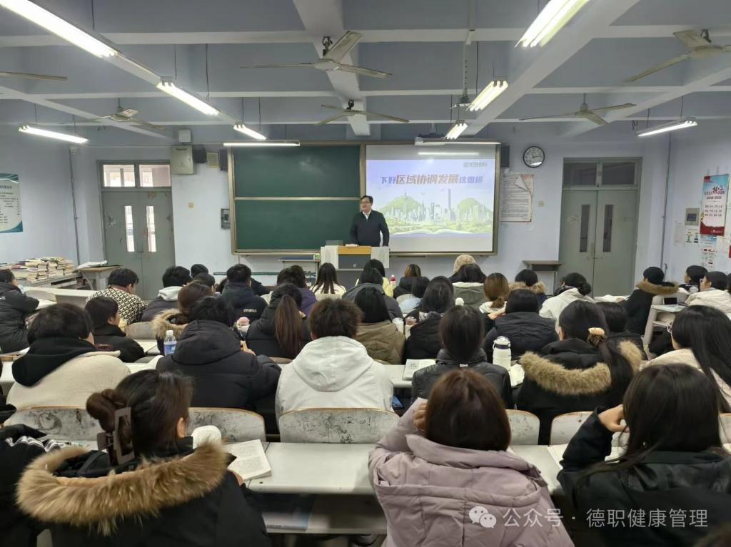 为帮助学生正确认识国内外形势,深刻领悟党和国家的政策,12月24日上午,beat365会员官方网站党委委员、办公室主任、宣传部部长朱弘为beat365会员官方网站24级智慧健康养老服务与管理一班和五班的同学们讲授了一堂形势与政策课,讲授的主题为“下好区域协调发展这盘棋”。