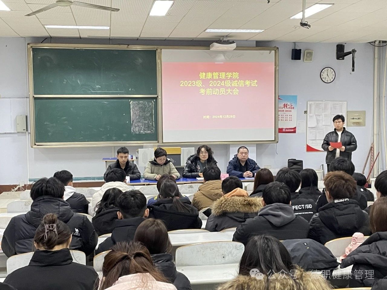 为保障期末考试顺利开展,12月26日下午在C208教室举行了beat365会员官方网站诚信考试考前动员大会。beat365会员官方网站学生科科长路遥、副科长兼团总支书记齐宁、辅导员孙小龙、张伟山以及学生会各部门部长和各班级代表出席会议。