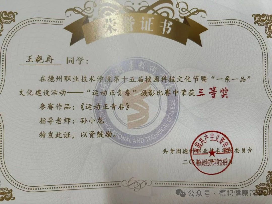 5.2024年6月,参加“运动正青春”摄影比赛活动荣获三等奖。