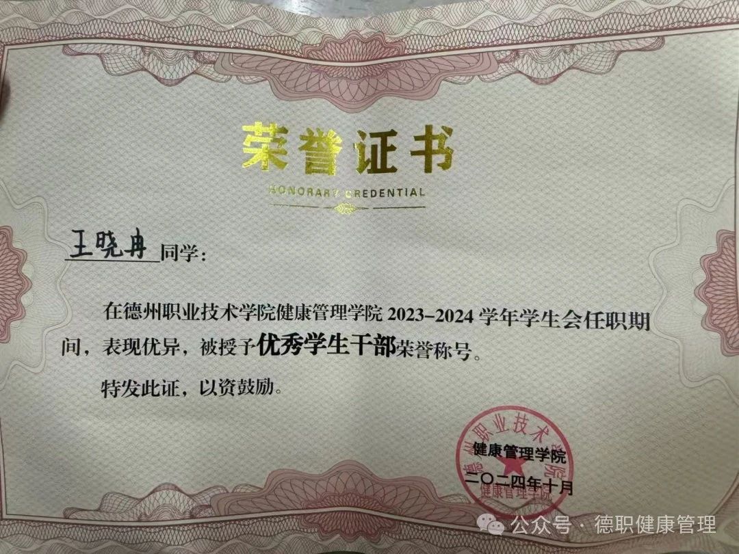 6.2024年10月,在beat365会员官方网站2023-2024任职期间,表现优异,被授予“优秀学生干部”荣誉称号。