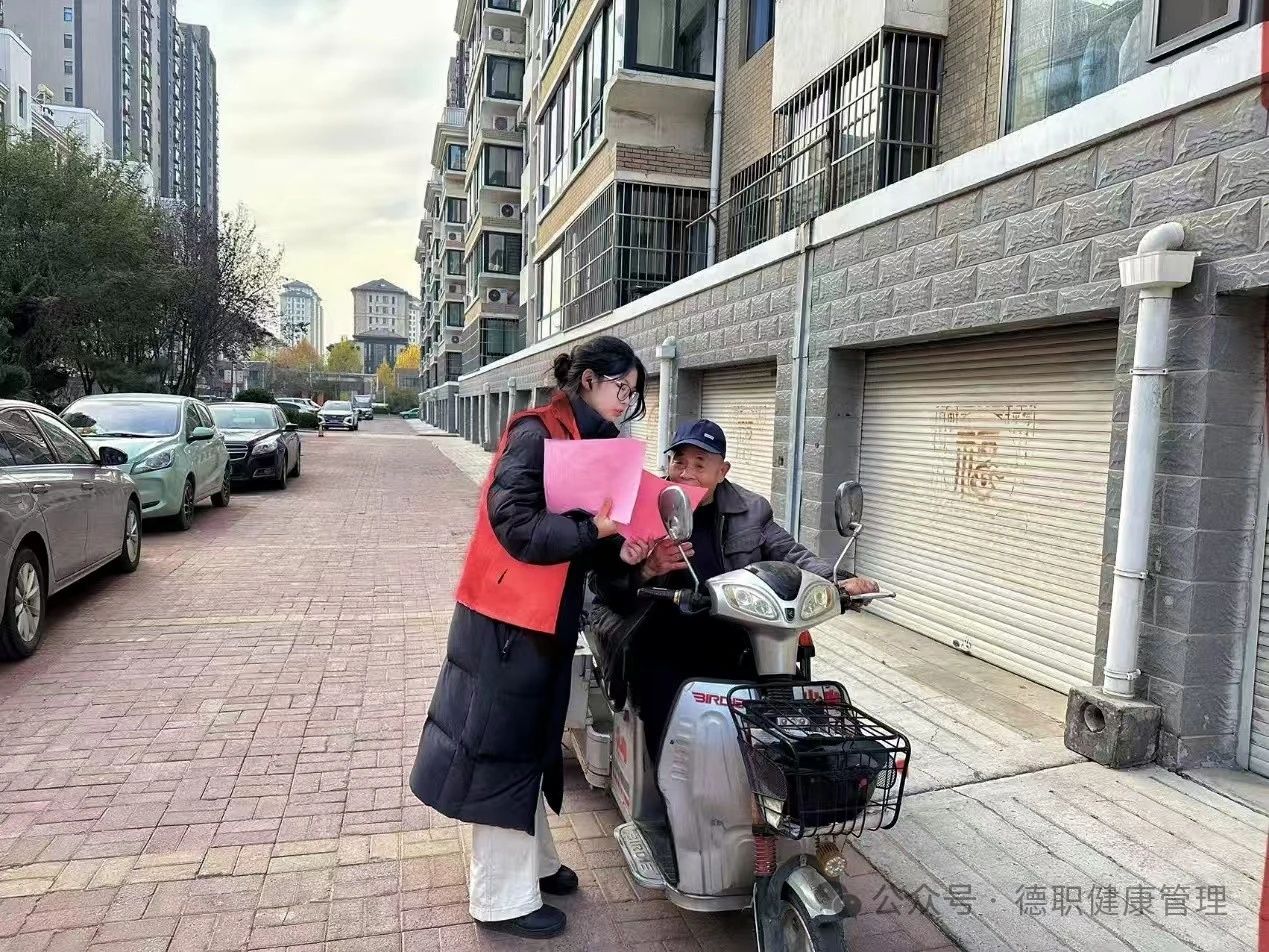 24健康大数据管理与服务一班的刘俊彦同学,在村委会的组织下,与村里的乡村医生一起为55岁以上的老人测量血糖和血压,并提供了健康建议,有效弘扬了邻里和睦的传统美德。