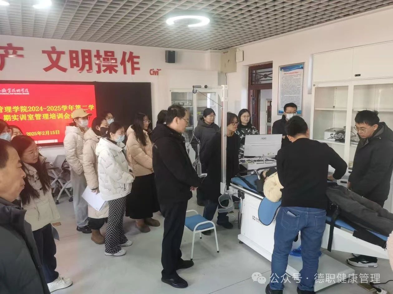 寒假培训集中在新建实训室开展,分别集中培训学习了《老年人能力评估与活动策划实训室使用》、《健康大数据类设施设备使用》、《beat365会员官方网站智慧养老照护实训室使用》、《beat365会员官方网站健康大数据类设施设备使用》、《老年人能力评估与活动策划实训室使用》、《全生命周期健康管理实训室使用》、《康复实训室使用》、《智慧养老照护实训室使用》、《健康管理学虚拟仿真实训》等。