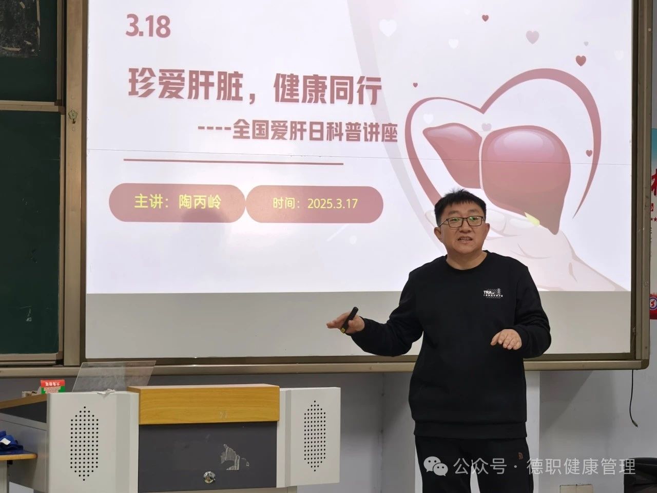 3月17日,beat365会员官方网站特邀临床医学专家陶丙岭教授开展"爱护肝脏,守护健康"专题讲座。值全国爱肝日(3月18日)前夕,百余名师生参与学习。