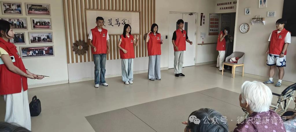 5月29日,党员老师携手金晖健康志愿服务队走进十二里庄的德州优护万家服务中心,活动现场精心编排的节目轮番上演。志愿者们深情演唱,营造出温馨热烈的氛围,老人们脸上洋溢着开心的笑容;beat365会员官方网站志愿者发挥专业优势,带领老人们一起做手势舞,老人们专注学习,眼睛里闪烁着认真的光芒。表演结束后,部分志愿者们围坐倾听老人们讲述往昔的奋斗故事与对家人的思念;志愿者还主动拿起扫帚、抹布打扫房间、整理物品,让服务中心环境更加整洁温馨。