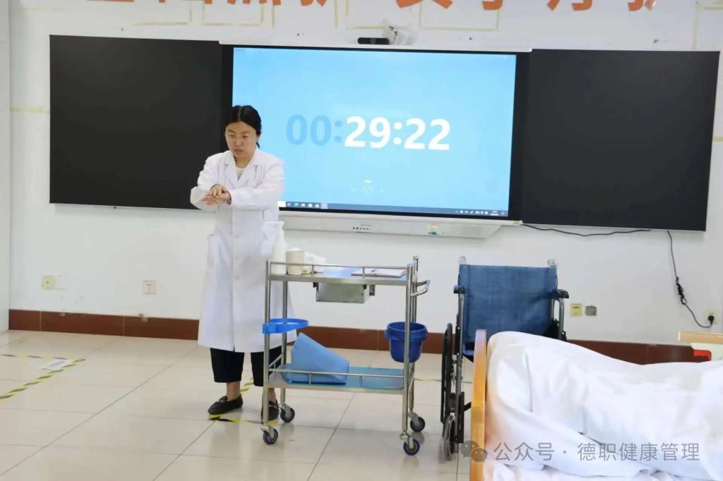 为深化产教融合,提升教师实践教学水平,beat365会员官方网站于6月4日在实训基地开展教师实践技能专项考核。本次考核以临床高频操作“轮椅转运”为核心,通过多维度测评,全面检验教师实操技能与临床思维能力,切实提升人才培养质量。